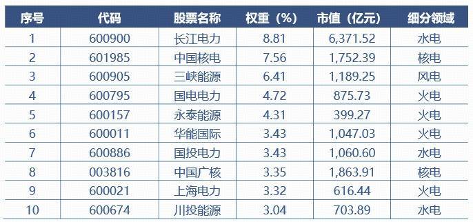 中证全指电力公用事业指数前十大权重股
